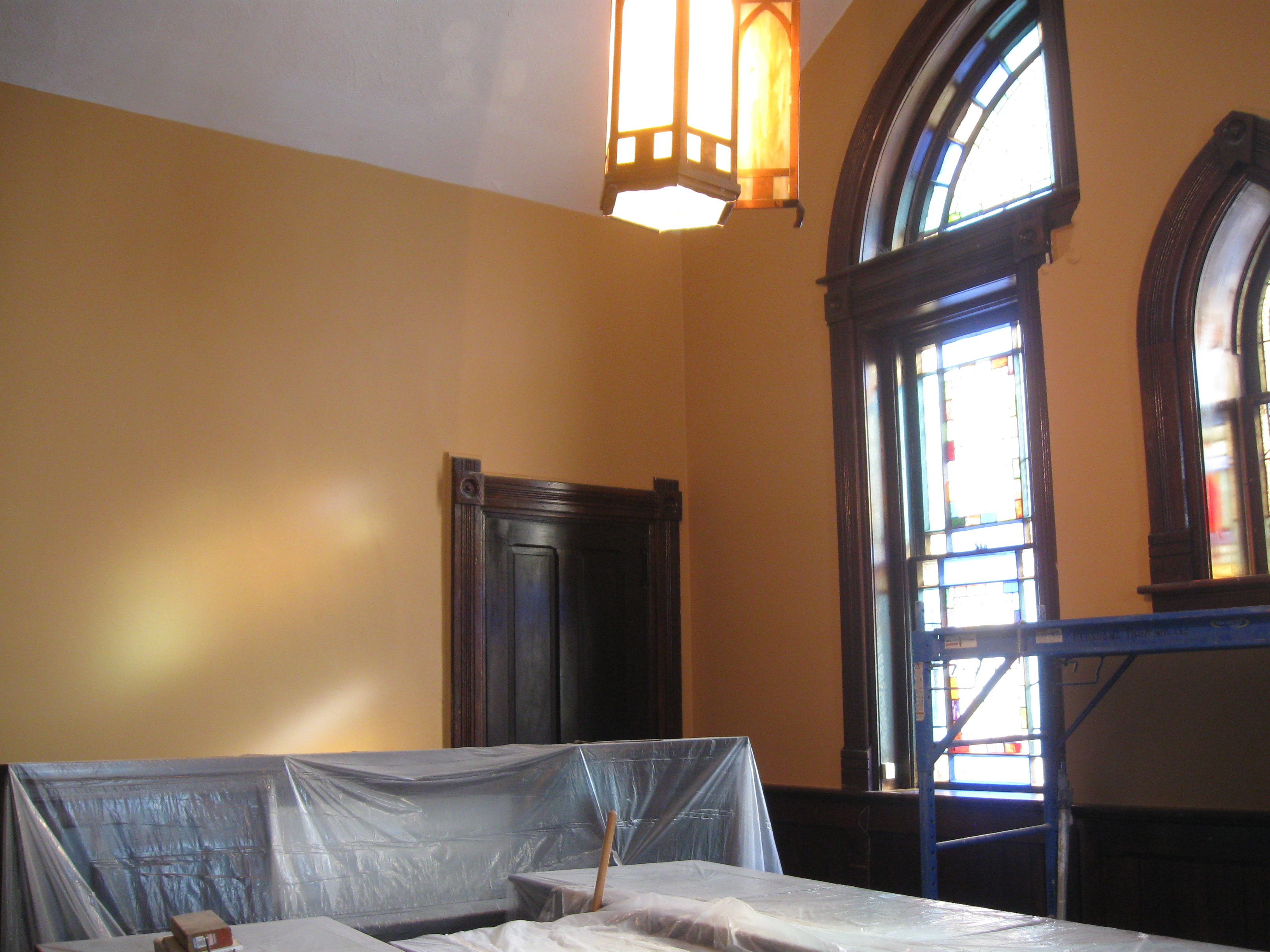 Painting and repair has progressed into the sanctuary.